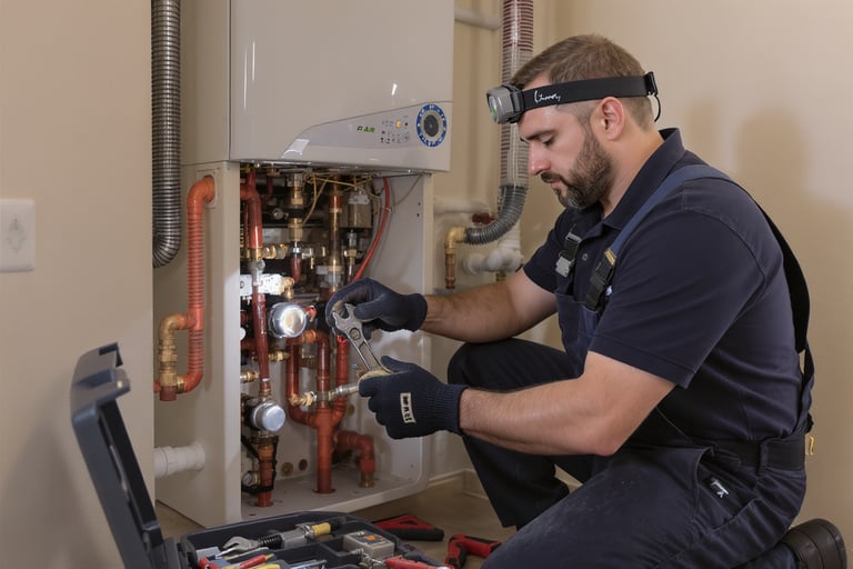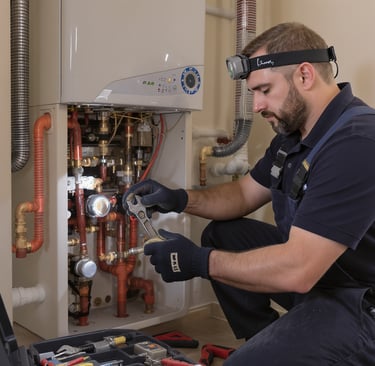 Un chauffagiste à l'œuvre, garant du confort thermique.